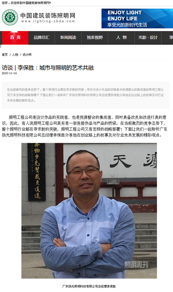 《照明周刊》專訪揚光照明總經理李總