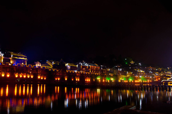 最后的旅游景點是鳳凰古城,常聽去過的人說:來鳳凰不僅要欣賞沱江兩岸若思迷幻的日景,更要欣賞沱江兩岸璀璨迷人的夜景,否則,你不算來過鳳凰。果不其然,鳳凰之美,一半在于夜景,隨著夜晚的降臨,風凰古城到處燈火輝映,沱江邊的吊腳樓倒影在水中,萬名塔和虹橋通體金黃,金碧輝煌如天上宮闕,兩相輝映,人間天堂。
